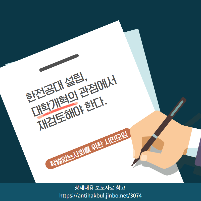 [보도자료] 학벌주의 부추기는 한전공대 대학개혁 관점에서 전면 재검토해야 한다.