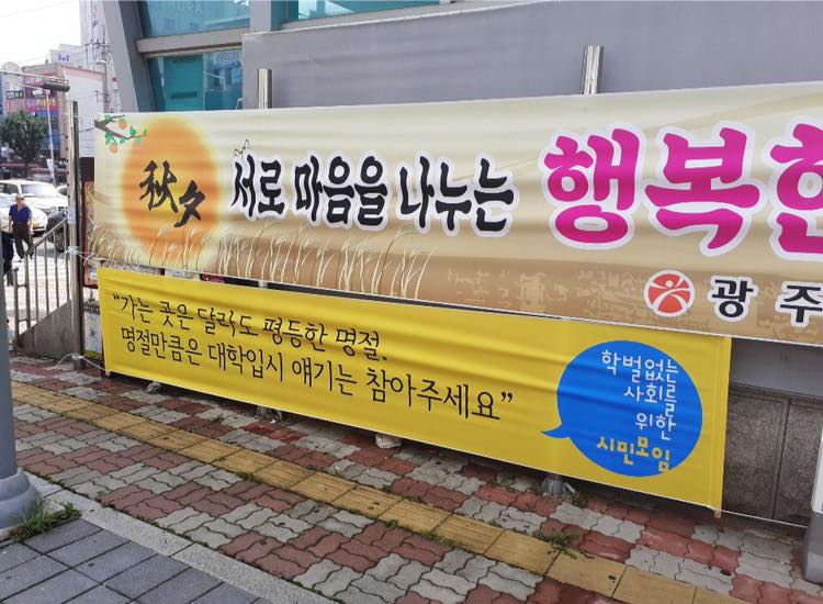 2019.9.11. 터미널, 기차역 주변에 명절 현수막을 게첨했습니다. “가는 곳은 달라도 평등한 명절. 명절만큼은 대학입시 얘기는 참아주세요.”