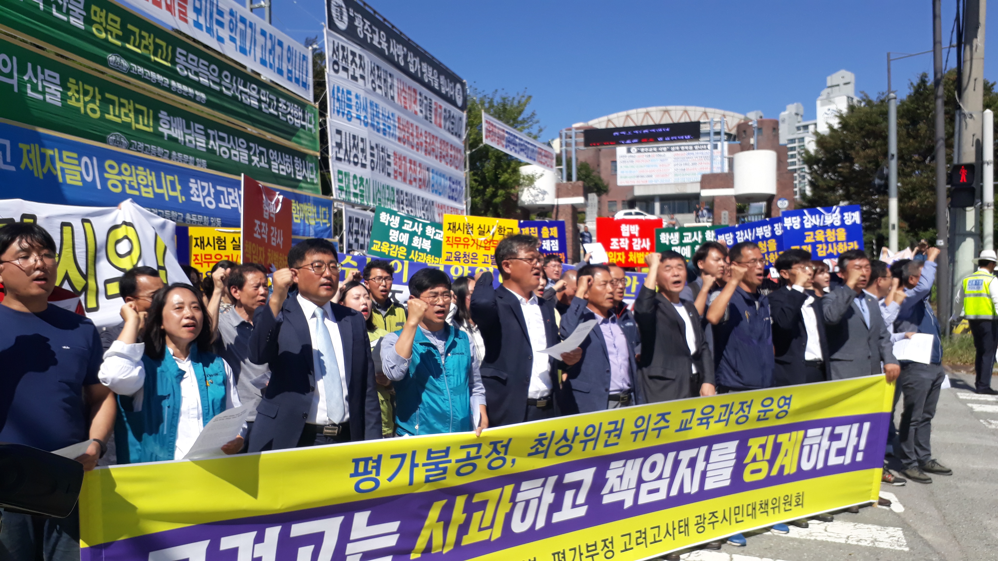 2019. 9. 24. 학벌없는사회를 위한 시민모임 등 여러 시민사회단체가 함께 성적우사자 학생 특혜 등으로 감사를 받는 광주 고려고등학교 앞에서 기자회견을 열고, 학교 측에 교육청 감사결과에 대한 사과와 관련자 처벌 등을 촉구하였습니다.