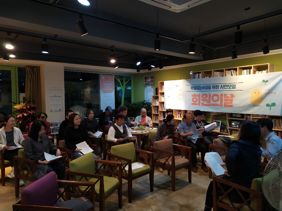 2019년 학벌없는사회를 위한 시민모임 회원의 날. 성황리에 잘 마쳤습니다. 학벌없는사회 운동사를 되돌아보며 앞으로 나아갈 길을 선언하였고, 여러 공연과 맛있는 음식으로 회원들 간의 친목을 다졌답니다.