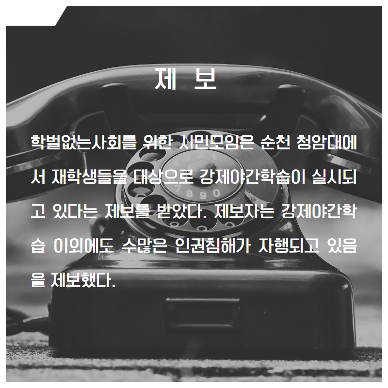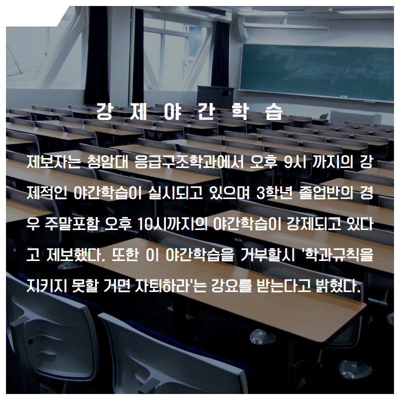 [보도자료] 청암대학교 응급구조학과강제야간학습 및 복장·두발규정 관련 인권위 진정,군기·기합 문화 및 졸업반지 악습 실태점검 교육부 민원 제출