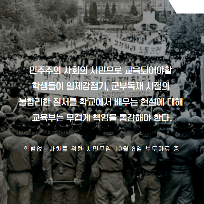 | [카드뉴스] 교육현장 친일잔재 청산, 평화적 관점이 필요하다 (0) | 2019.10.11 |