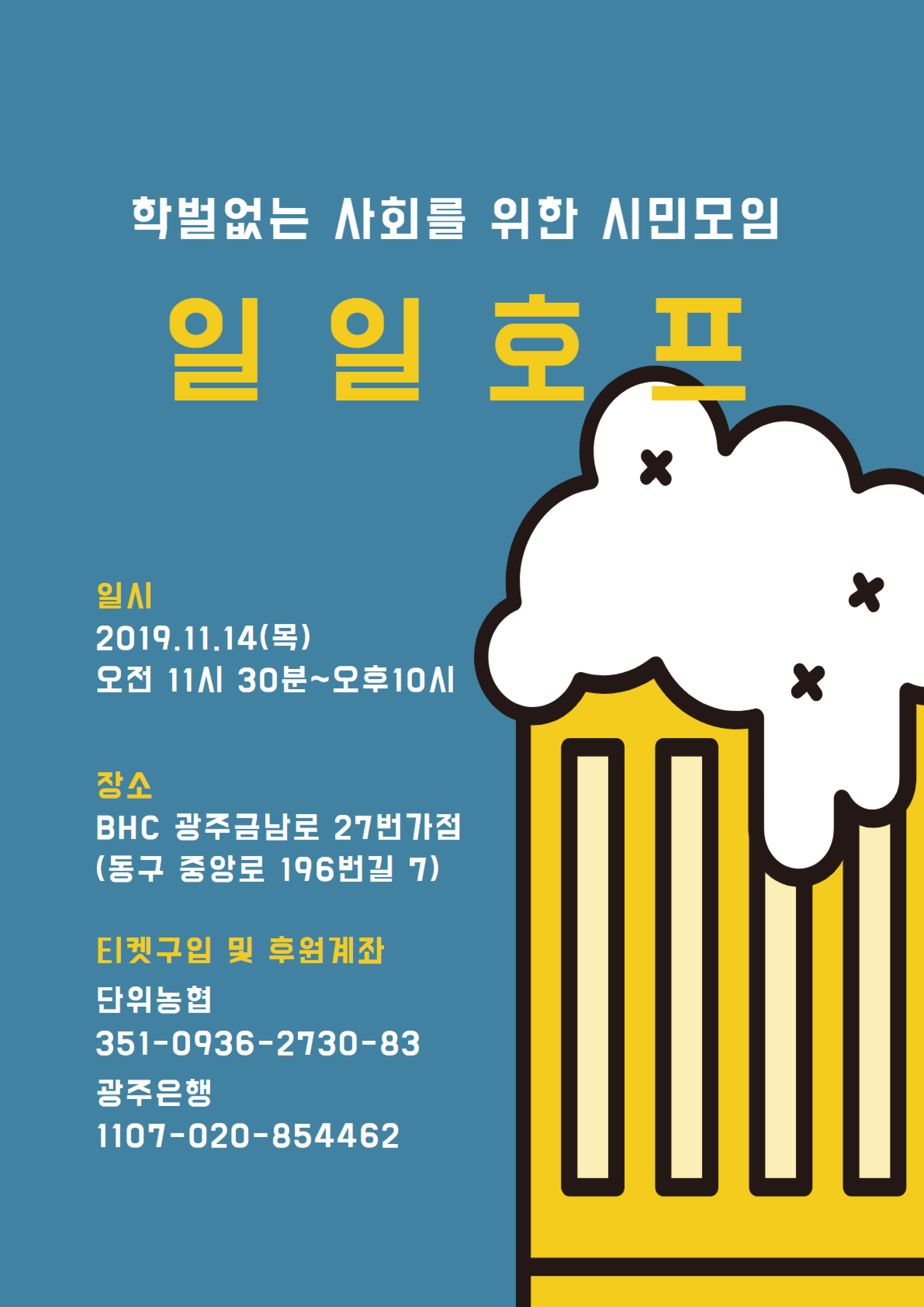 「학벌없는사회를 위한 시민모임」의 재정안정을 위한 일일호프에 함께 해주세요