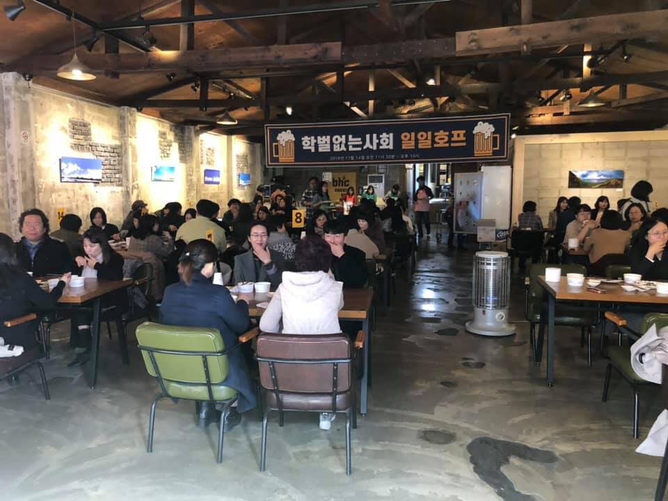 학벌없는사회를 위한 시민모임 일일호프(2019.11.14.)에 함께 해주신 여러분께 감사드립니다. 더 나은 시민단체로 성장하여 좋은 세상 만들어나가겠습니다. 지속적으로 후원 또는 활동을 하고 싶으시다면 회원가입을 해주시면 더욱 감사하겠습니다.