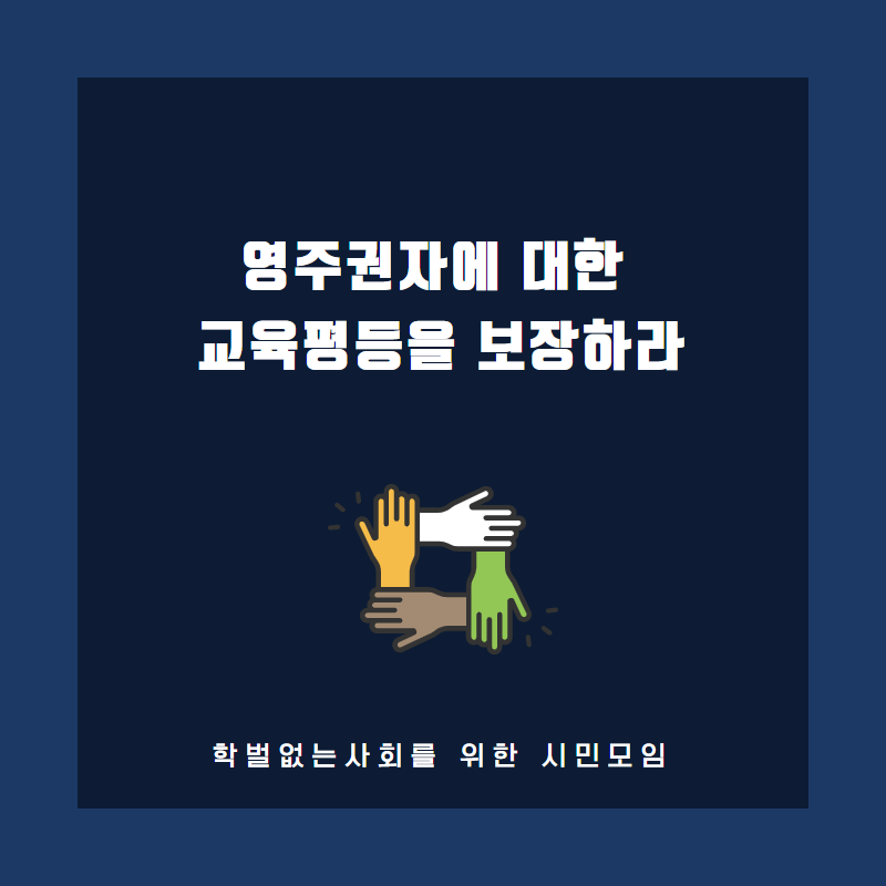 o 학벌없는사회를 위한 시민모임은 국내 영주권자, 임시비자소지자(이하, 국내 영주권자 등)를 유아 교육비 지원 대상에서 배제하는 것은 합리적인 이유가 없는 평등권 침해의 차별이라고 판단�