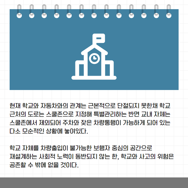 [보도자료] 교내 무분별한 주차, 스쿨 존 사각지대로부터 어린이를 보호하라.