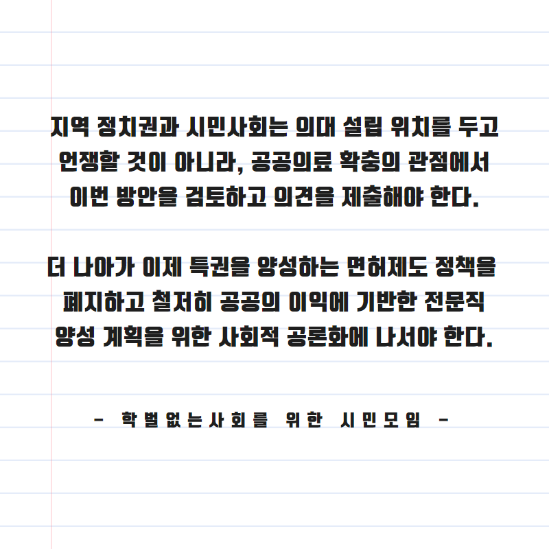 [보도자료] 학벌주의를 퍼트릴 것인가? 공공의료를 확보할 것인가?