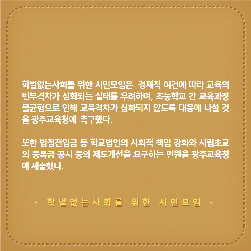 [보도자료] 광주 관내 사립초교, 연간 1000만원 학비 시대