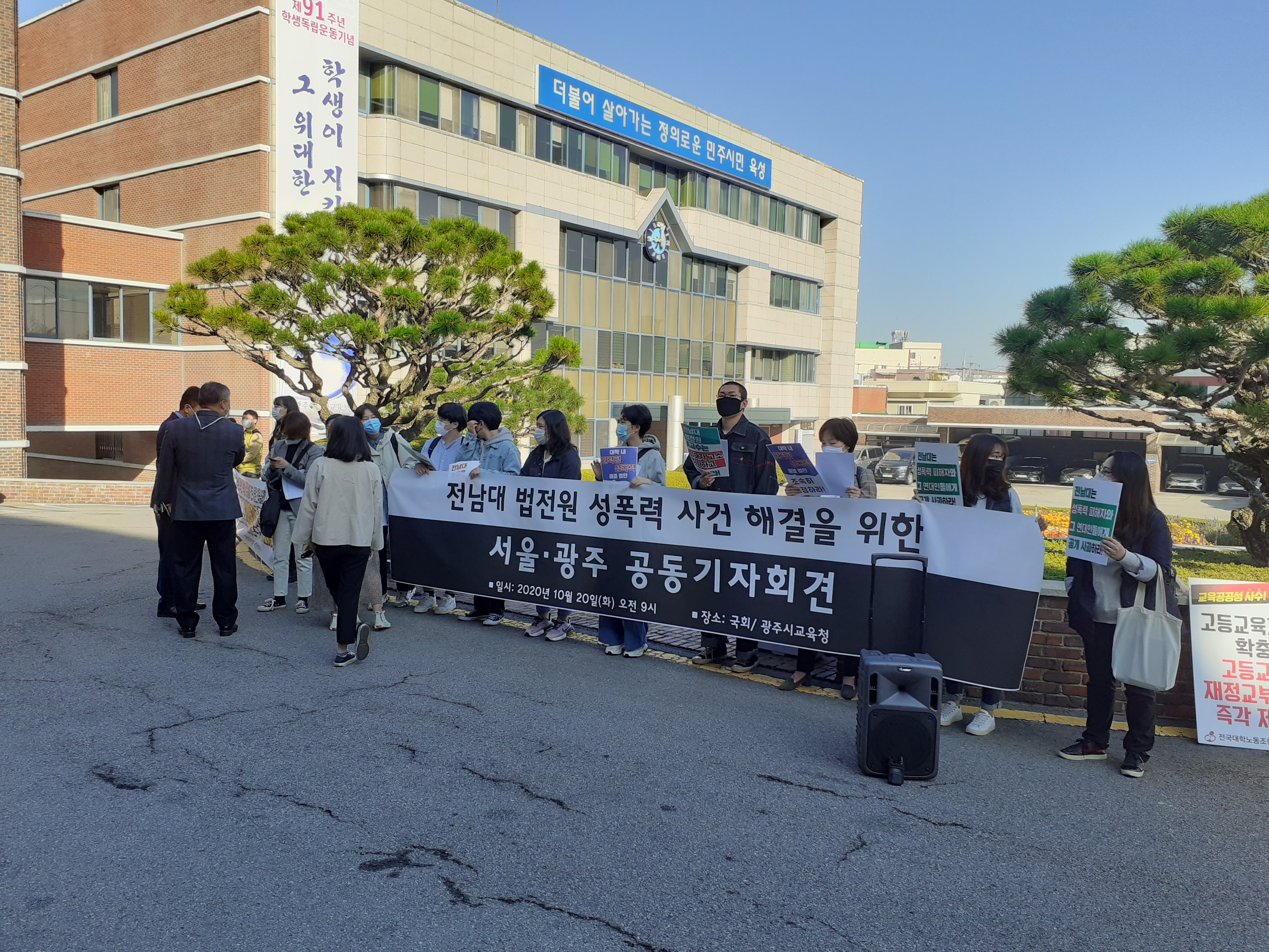 국회 교육위원회 국정감사 실시 전인 2020. 10. 20. 학벌없는사회를 위한 시민모임 등 교육관련 단체들이 연대하여, 도연학원 사학비리 문제 해결과 전남대학교 법학전문대학원 성폭력 문제 해결을 촉구하였습니다.