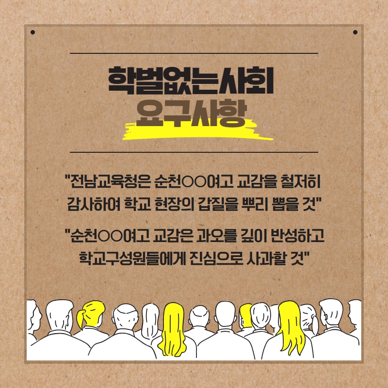 [보도자료] 학벌없는사회, 순천○○여고 교감의 갑질 의혹 감사 촉구