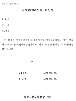 일반고에 진학했지만 3학년 학생들이 진로변경을 희망하는 경우가 있다. 교육·노동당국은 이들을 위해 직업과정 위탁교육제도(이른바, 직업반)를 운영하고 있다. 그런데 광주 관내 일부 직업훈련기관에서 3년 전 폐기된 비진학 확인서를 필수 제출하도록 직업반 학생과 보호자에게 요구하고 있는 것으로 확인됐다.