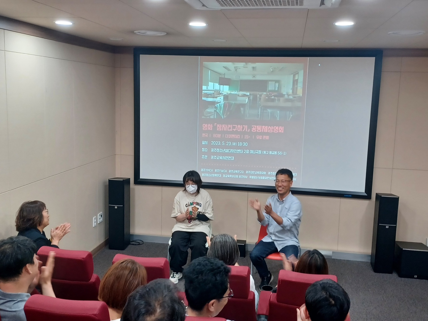 2023년 5월 23일 저녁6시30분 광주청소년삶디자인센터 미니극장에서 영화 ‘잠자리 구하기’를 상영했습니다. 대학의 의미를 질문하는 감독과 친구들의 자전적 이야기를 담은 영화로, 많은 교육주체들이 극장 좌석을 가득 채워주셨습니다.
