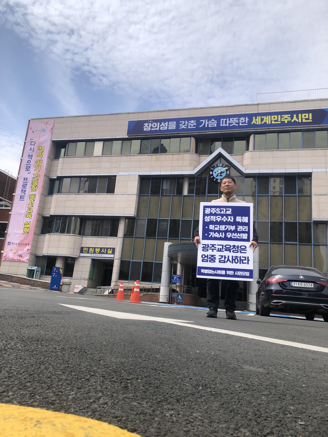 광주S고등학교의 학생생활기록부 우선 관리, 기숙사 우선선발 등 성적우수자 특혜 관련 엄중감사를 촉구하는 일인시위를 2024. 3. 22.부터 진행했습니다. 일인시위는 위 감사 종료 할 때까지 진행할 예정입니다.