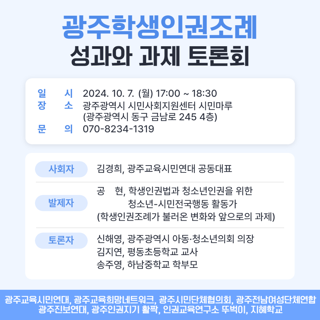 광주학생인권조례 성과와 과제 토론회 참가 안내