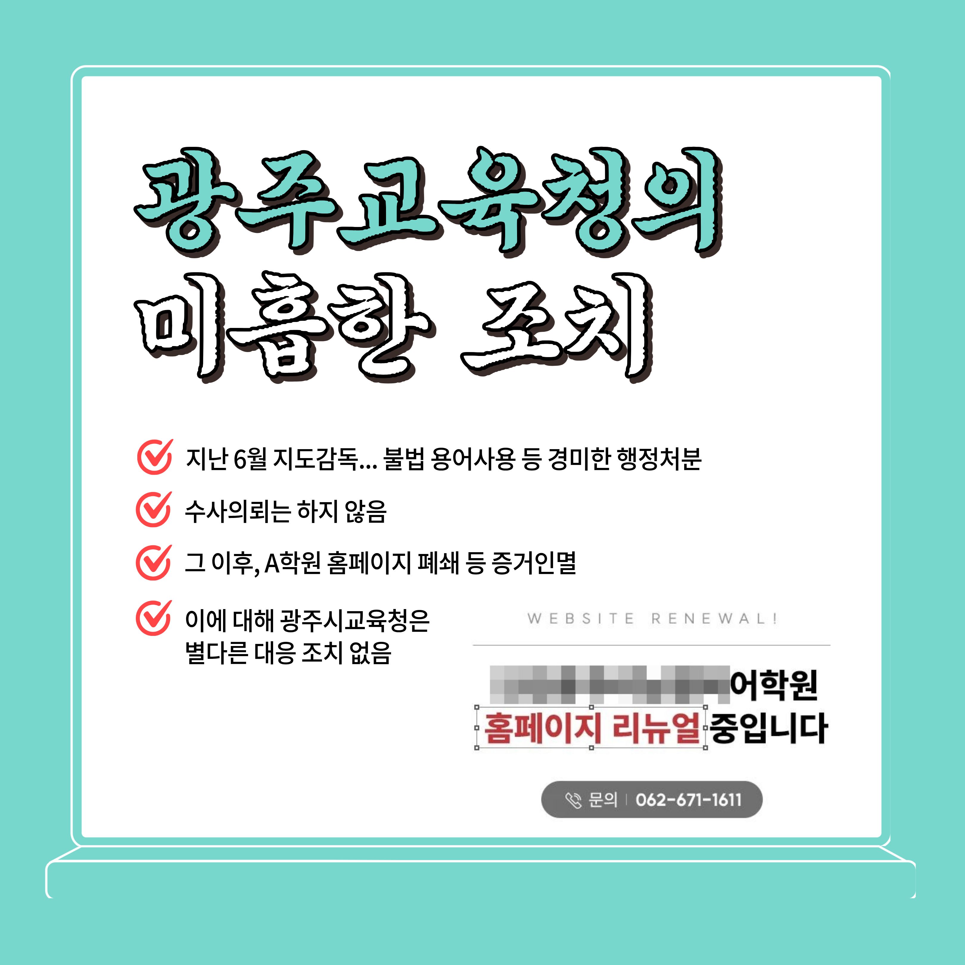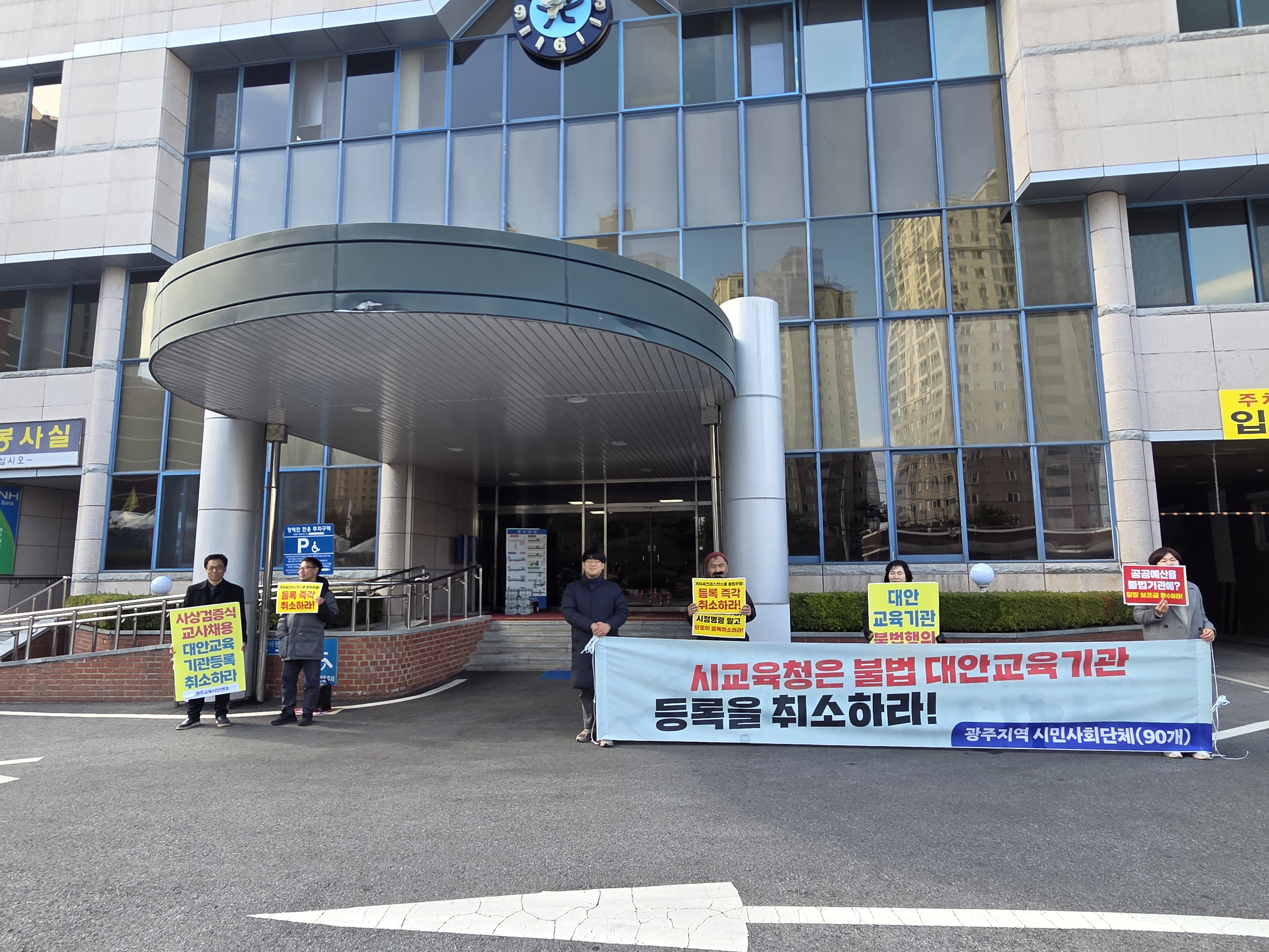 광주 특정 대안교육기관의 불법 행위 및 부적정한 학사운영에 대하여 문제를 제기하고, 그에 따른 등록 취소 등 후속조치를 촉구하는 시위를 2025년 10월 중순부터 한달여간 진행했습니다.