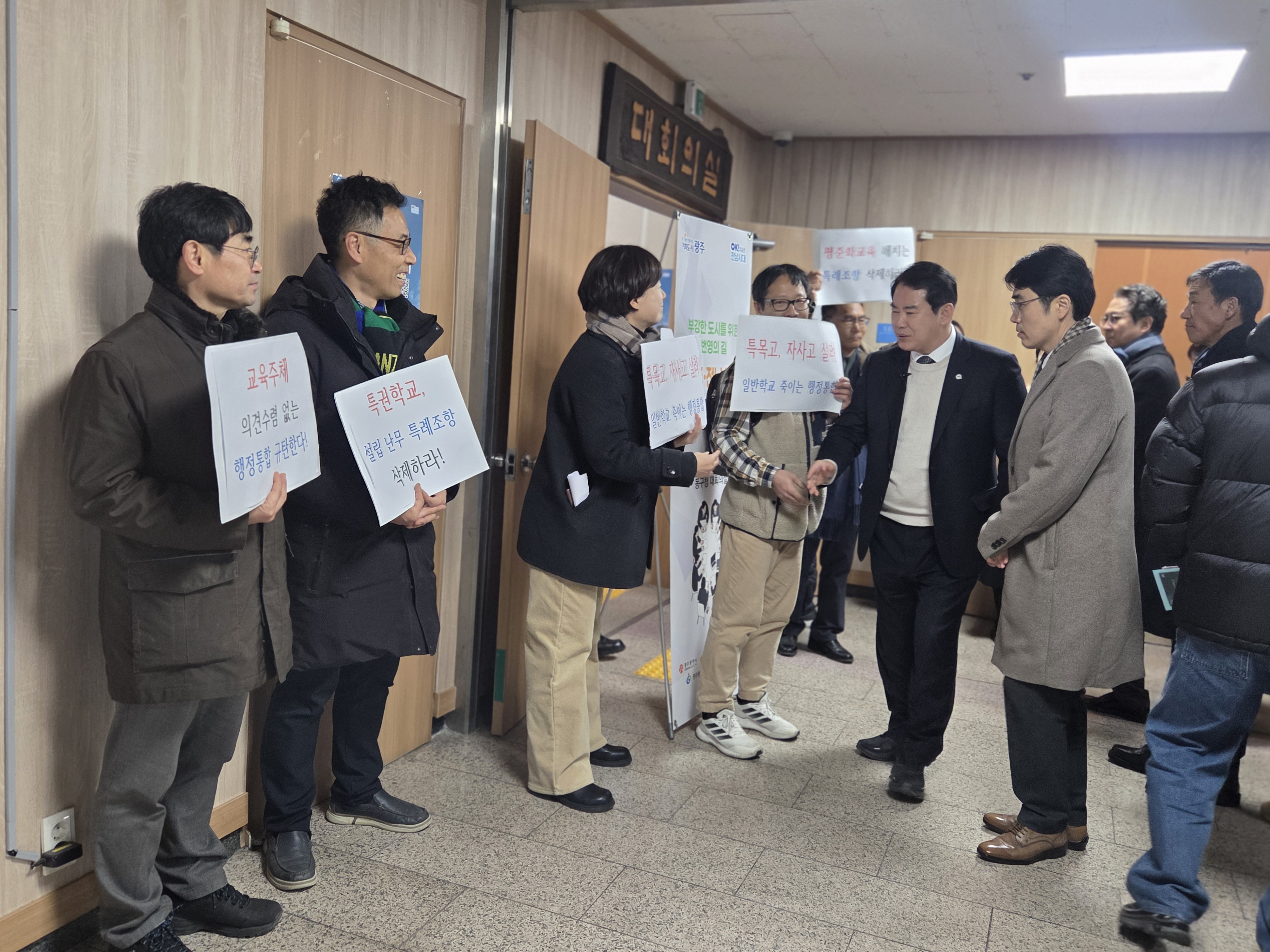 그럼에도 광주광역시교육청은 '특권학교 특례 조항 폐지'에 대해 사실상 검토 의사가 없다는 입장을 반복하고 있다. 해당 특례가 전남교육청의 요구라는 설명으로 책임을 돌리지만, 이는 공동으로 추진되는 특별법의 합의 정신과도 어울리지 않을뿐더러, 광주교육청 스스로 책임을 회피하는 태도에 불과하다.